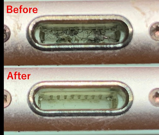 汚れが充電口内部の精密な端子部分にダメージを与えることがあり、それにより機能の低下や最悪の場合、修理が必要になるケースもあります。